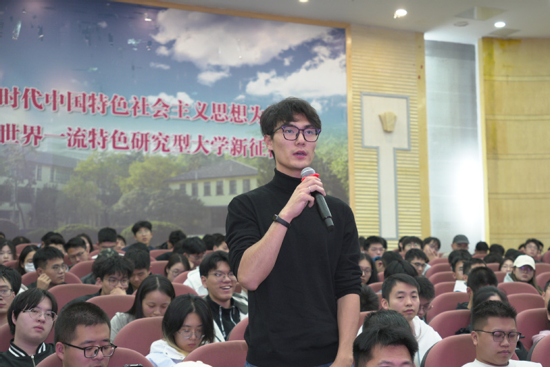 在交流互动环节,矫勇与师生们展开了深入的交流互动。现场师生踊跃提问,矫勇结合自身丰富的治水实践与管理经验,就同学们水文研究领域、生态文明治理、新时代的系统治水要求等问题,进行了详尽而深刻的解答。